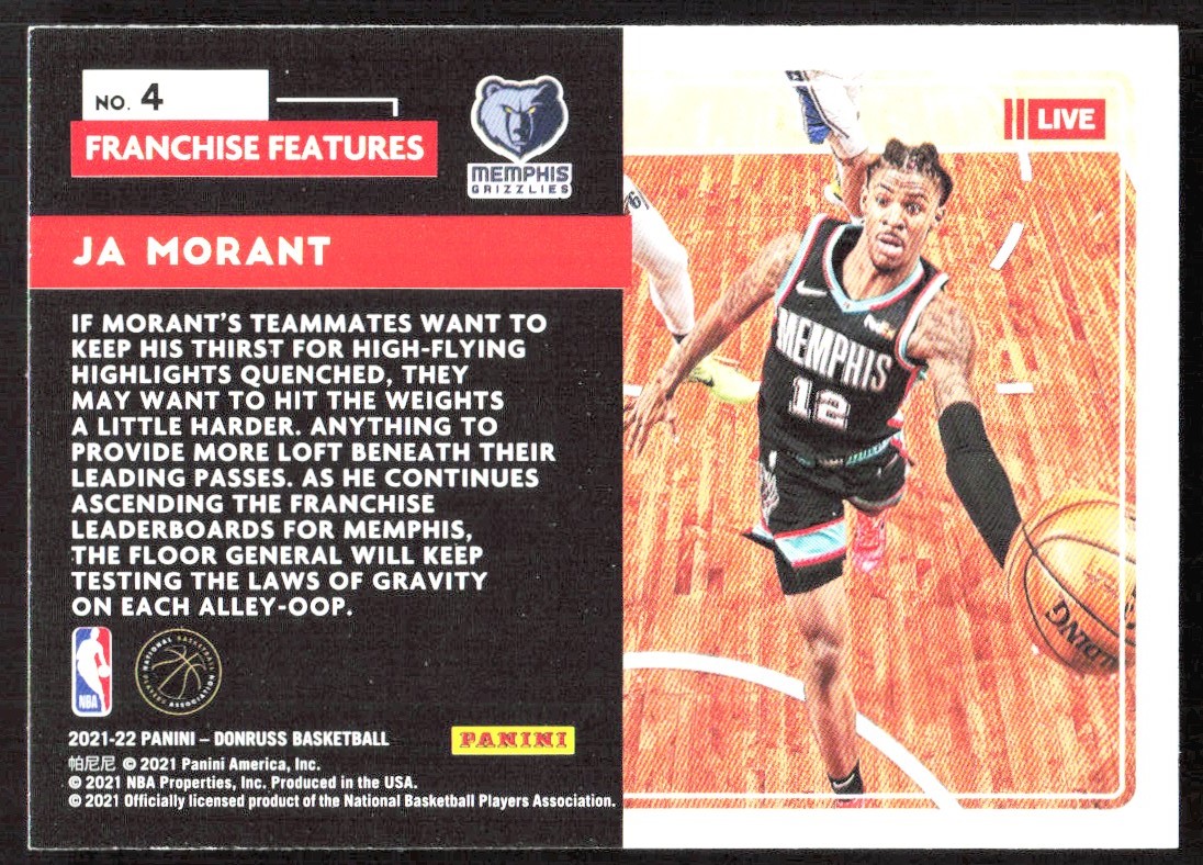 2021-22 7962B Donruss Franchise Features Ja Morant Memphis Grizzlies #4