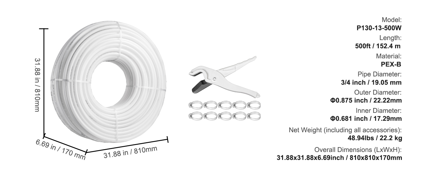 Say goodbye to cumbersome pipe cutting! Our PEX-B pipe comes with a dedicated pipe cutter that ensures clean cuts without any risk to your hands. Installation requires just 4 simple steps, and when used with the included clamps, it significantly boosts work efficiency.