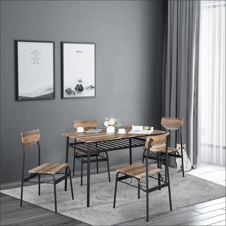 1. 【5-piece dining table and chair set】bar table and chairs set sold in a complete sets which included 1 bar table and 4 stools. One extra storage layer under the desktop can be used to store magazines, newspapers, wine, snacks etc. Simple and modern design, perfectly blend in with any type of home decor. 2. 【Multifunction Dining Table】Our bistro table set can be widely used as a computer desk,dining desk,office desk,writing workstations,office workstation,study table, writing desk, gaming desk,bistro table set, etc. 3. 【SPACE-SAVING, COUNTER-HEIGHT DESIGN】Take advantage of a compact, counter-height table with a pair of cushioned stools that can be neatly stored underneath for space-saving convenience. 4. 【INSTALLATION & MAINTENANCE】Easy installation for one people within 30 min with the user guide. Dust Removal - Please use the dried clean cotton cloth after soaked; Please move carefully to avoid being scratched; Avoid prolonged exposure to sunlight; Avoid rocking overload. Specifications: 1. Color: Natural Color 2. Material: P2 Density Board Table Capacity: 286.60lb / 130kg; Weight: 29.54lb / 13.4kg Chair Capacity:110.23lb /50kg; Weight: 8.05lb / 3.65kg