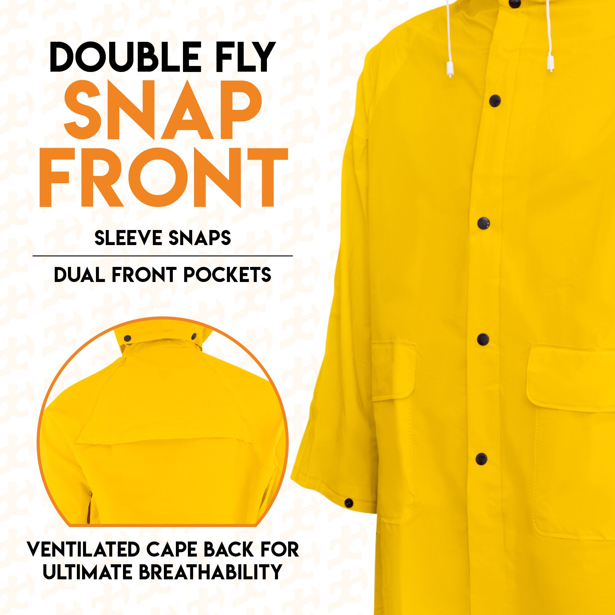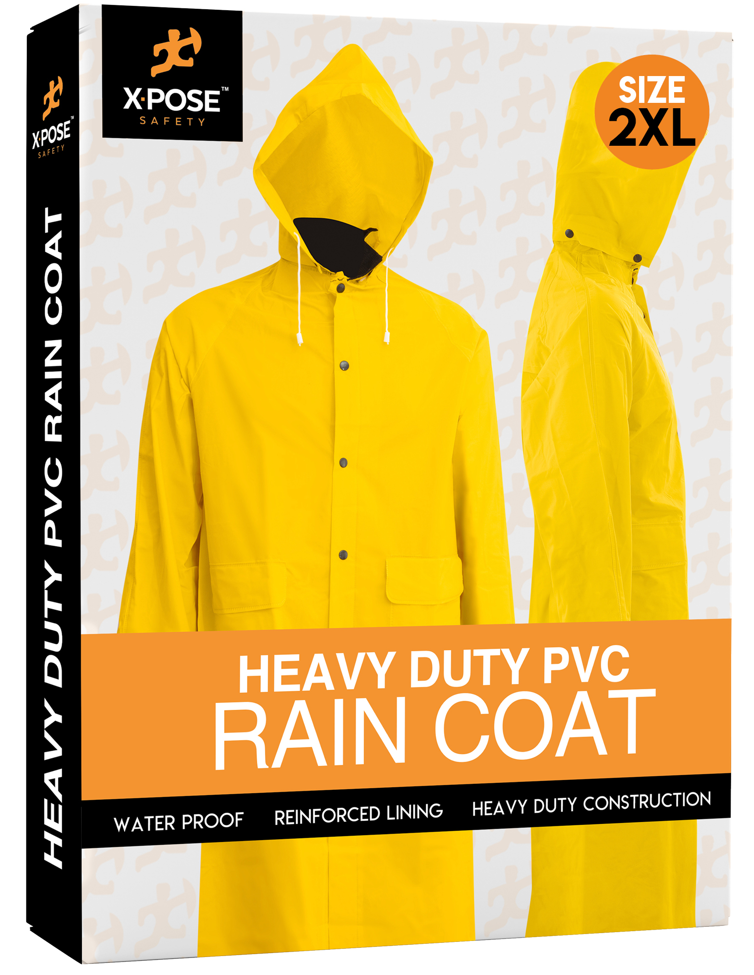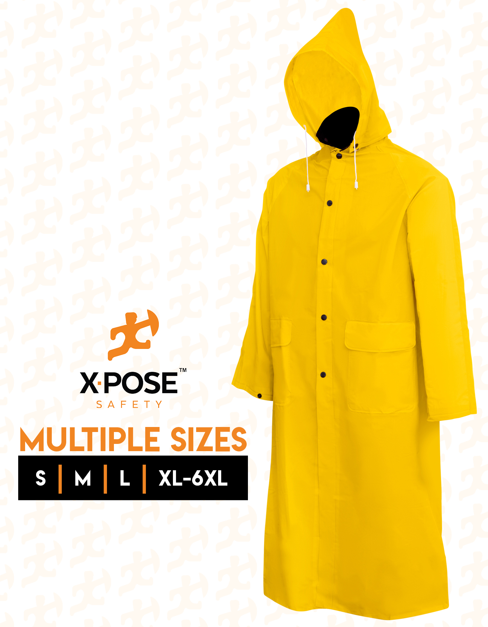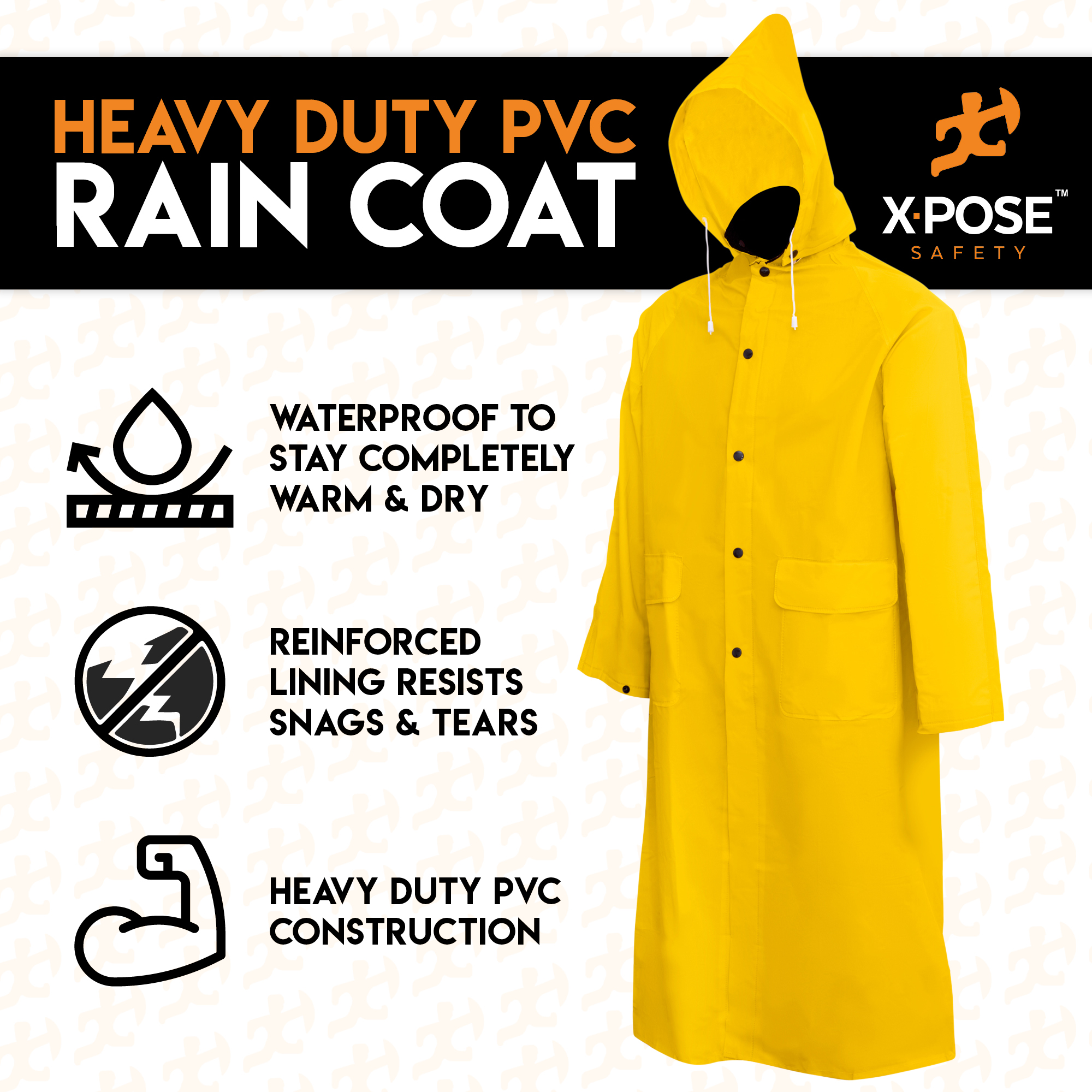 Stay warm, dry and comfortable in wet weather conditions with this premium PVC trench coat rain jacket from Xpose Safety. Designed for heavy rain, wind, and ocean spray, this protective jacket has multiple convenient snap closures that let you seal out the wetness and seal in the warmth.
