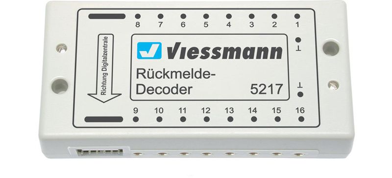 Kompatibel zum s88. Der Rückmeldedecoder ist mit dem Märklin Interface, dem Märklin Memory, der Uhlenbrock Intellibox und dem Viessmann Commander einsetzbar. Die 16 Eingänge des Moduls sind zur Belegtmeldung oder zum Auslösen von Memory-Schaltfunktionen an Schaltgleisen, Schaltkontakten Art. 6840 (H0) oder bei Märklin K- und C-Gleisen direkt an Kontaktgleisstrecken anschließbar. Ein 15 cm langes Flachkabel mit originalem s88-Stecker liegt bei. Speziell für Zweileitergleise empfehlen wir den Einsatz des Rückmeldedecoders mit Gleisbesetztmelder Art. 5233.