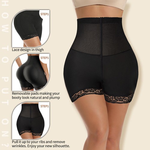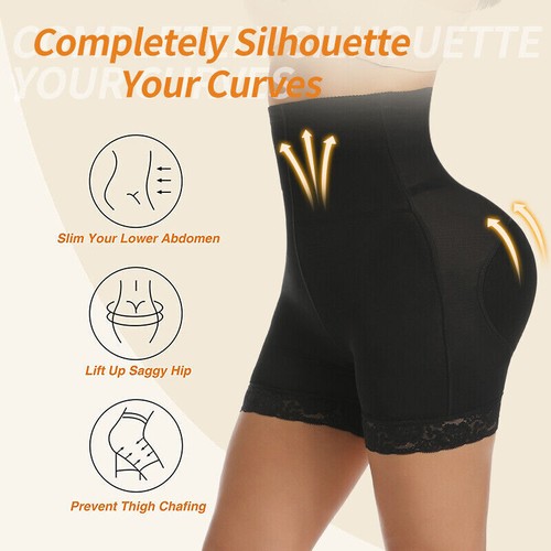 【REMOVABLE PADDED BUTT ENHANCER】Women padded butt lifter panties has 2 detachable butt pads for bigger butts,hips pads covered enough and stays in place,don't having to adjust pads constantly.The 2 pads for the butt lifter enable us show the perfect waist-to-hip ratio, adding more hourglass curve. And the 2 butt pads of this shapewear butt enhancer not only provide soft touch when sitting, but it also makes our butt looks bigger, rounder and fuller,you’ll have the perfect perky booty.