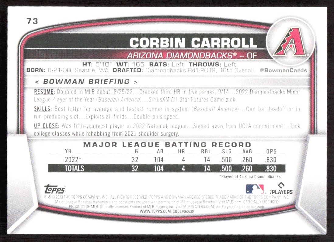 2023 9999B Bowman Corbin Carroll Rookie Arizona Diamondbacks #73