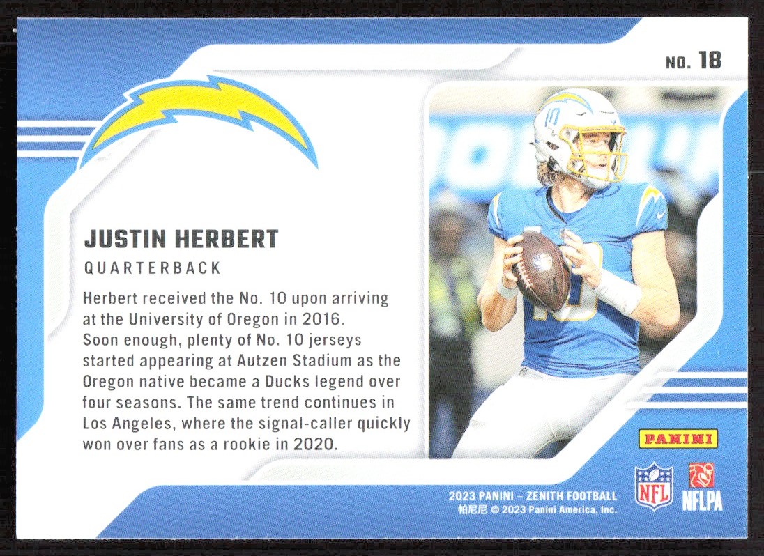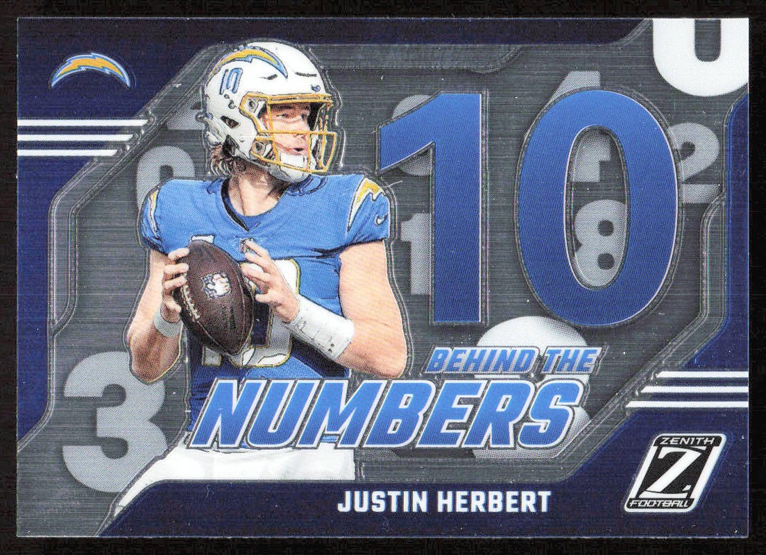 2023 10021B PANINI ZENITH BEHIND THE NUMBERS Justin Herbert Los Angeles Chargers