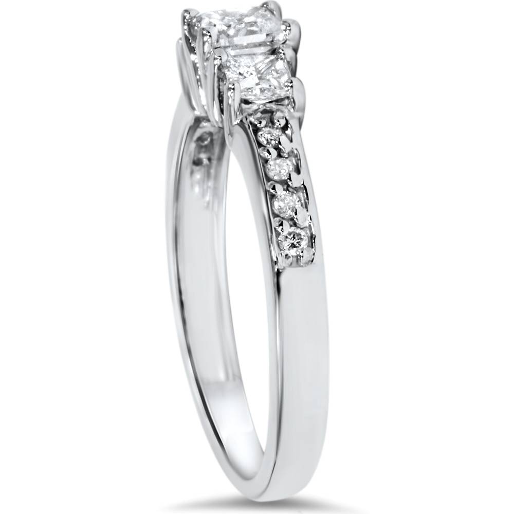3/4ct Three Stone Princess Cut Diamond Engagement Ring 14K White Gold