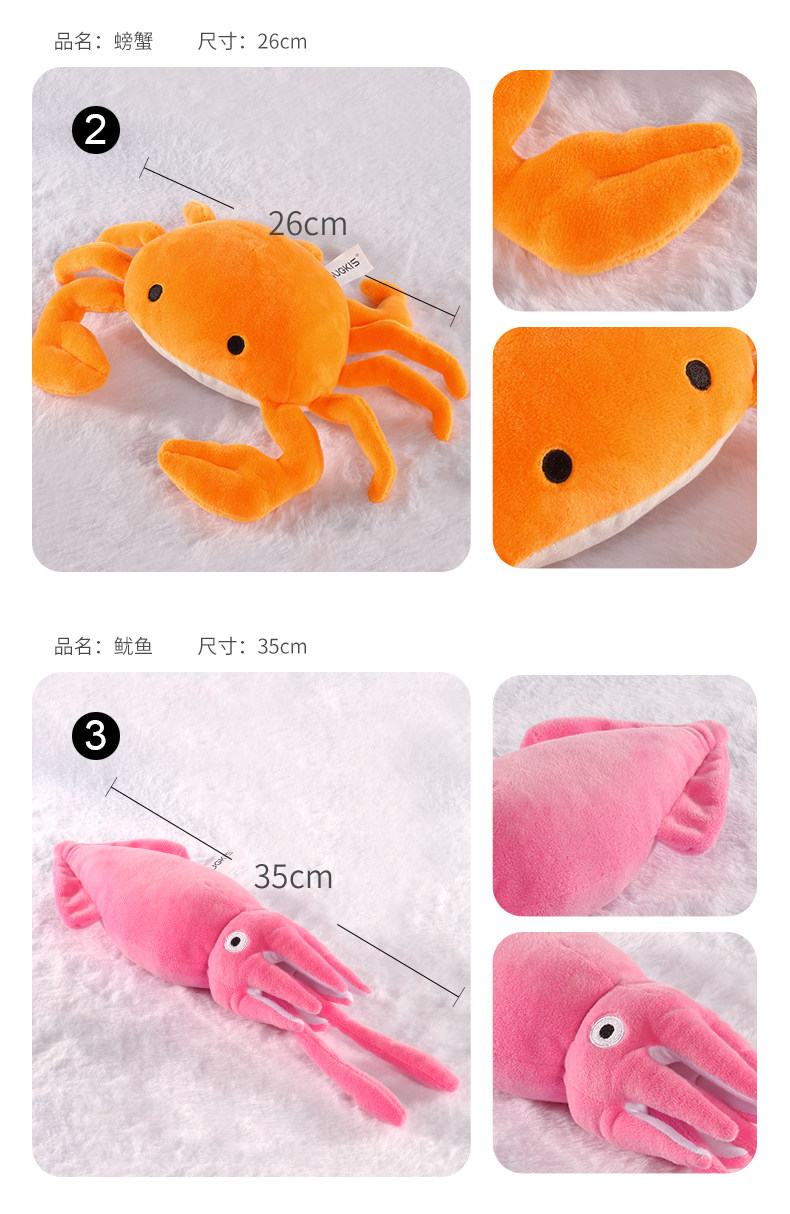 Lifelike Crab Fish Lobster Starfish Squid Scallop Emulational Sea Animal Soft Stuffed Doll Plush Toy Birthday Christmas Gift 1pc
