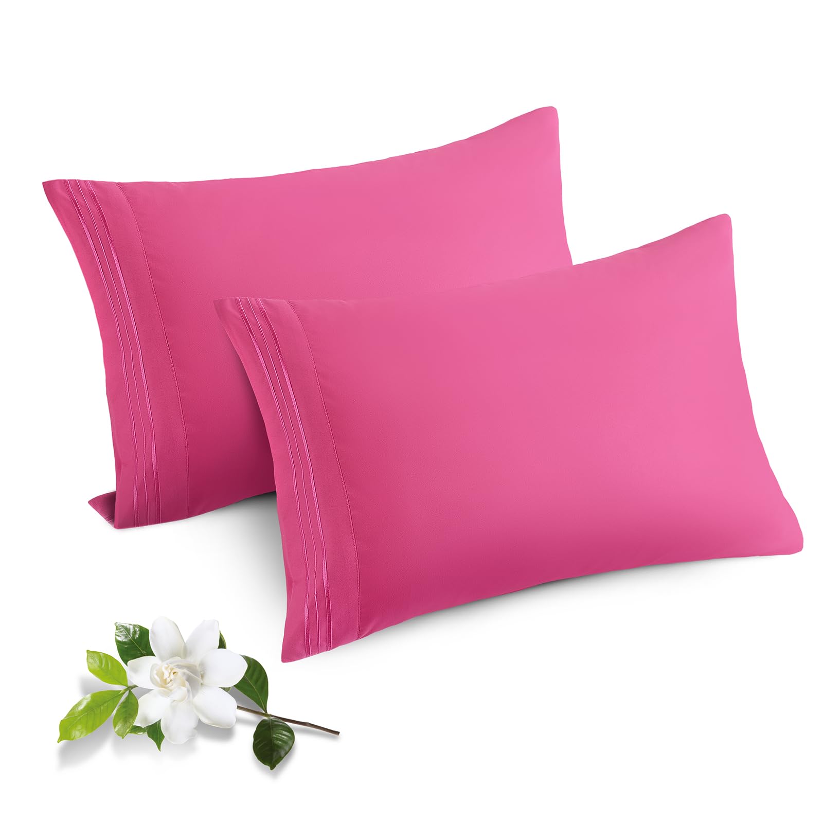 2 Pack Microfiber Pillowcases Standard Size Hot Pink Bed Pillow Cases with Envelope Closure, 1800 Thread Count Soft & Shrinkage Resistant Pillow Covers, 20 x 26 Inches About : , a home textile brand, aims to produce and premium quality bedding and textile product at a affordable price. Our mission is to help our customers have a wonderful sleeping experience and create a warm home. Feature: Super Soft - Made of high quality 1800 thread count microfiber, soft and breathable, anti pilling, fade and wrinkle resistant. Design - Undergone stripe embossing technology adds exquisite , makes it unique and decorative. Pure color pillowcases blends easily with any decor, everthing is just right. Specification: Material: Microfiber Size: 20" x 26" Color: Hot Pink Package Content: 2 x Pillow Covers Your satisfaction is our primary goal. We are devoted to produce high quality bedding set for great sleeping. Don't hesitate, just try our product and you will fall in love it.