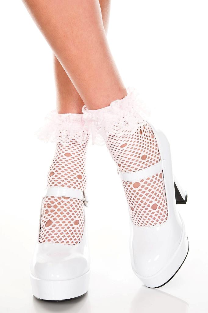 - Description: Circle net ankle socks feature ruffle trim.