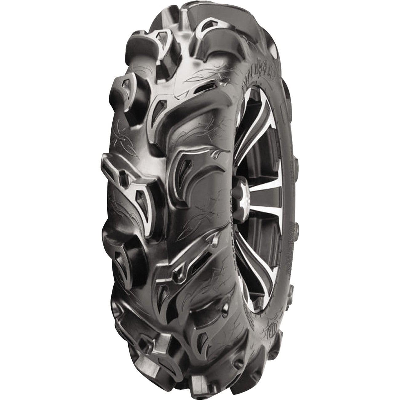 ITP Mega Mayhem quad tires feature a unique, deep lug tread design that mocks the nastiest mudholes but still plays nice on harder trail surfaces. With its extended wear rubber compound and durable 6 ply rating, this tire can take a beating and come back for more. And with its distinctive, tribal inspired, embossed artwork, the Mayhem makes your side-by-side stand out in a crowd, not just for its abilities but for its attitude, too.