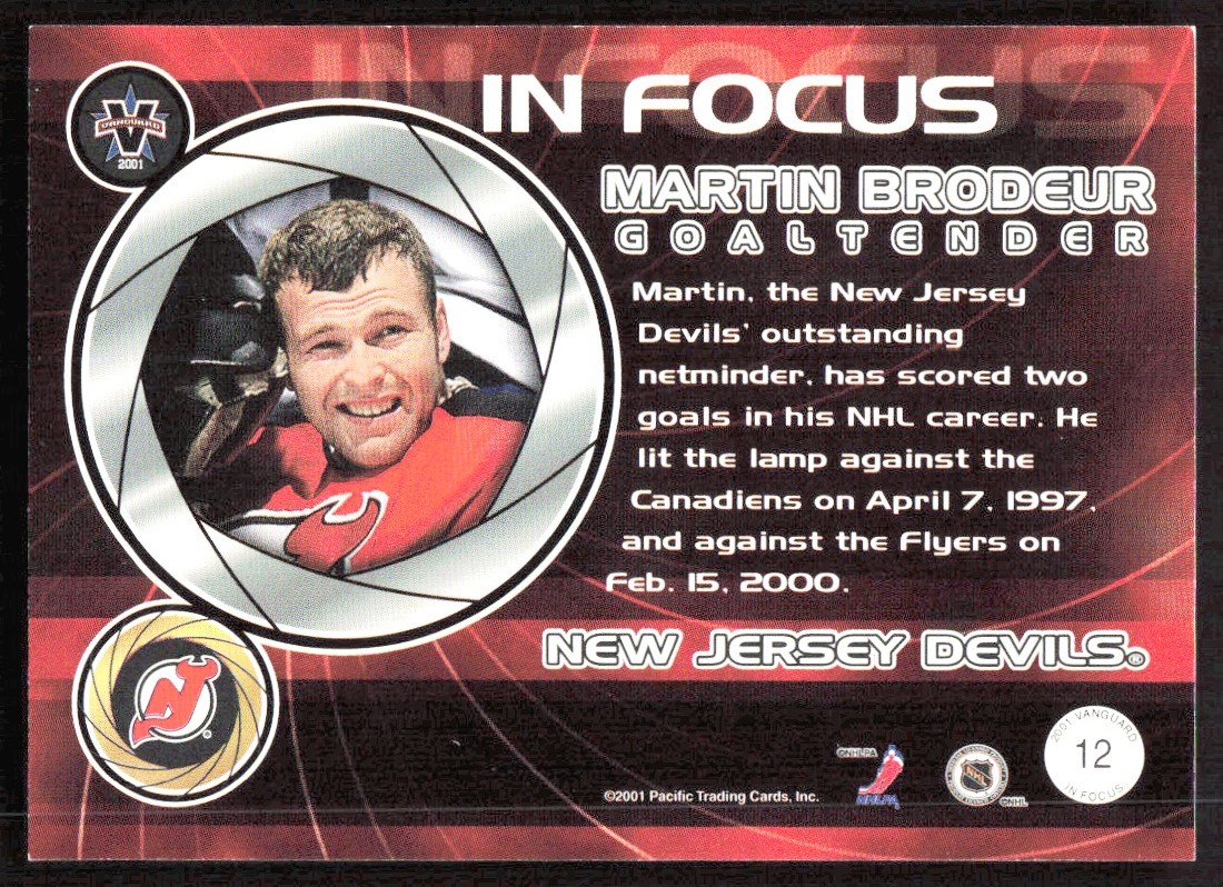 2001-02 982C Pacific IN FOCUS Martin Brodeur New Jersey Devils #12