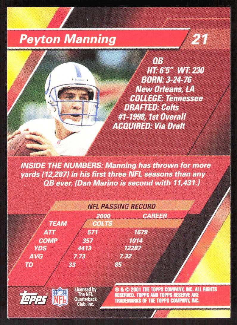 2001 1168C Topps Reserve Peyton Manning Indianapolis Colts #21