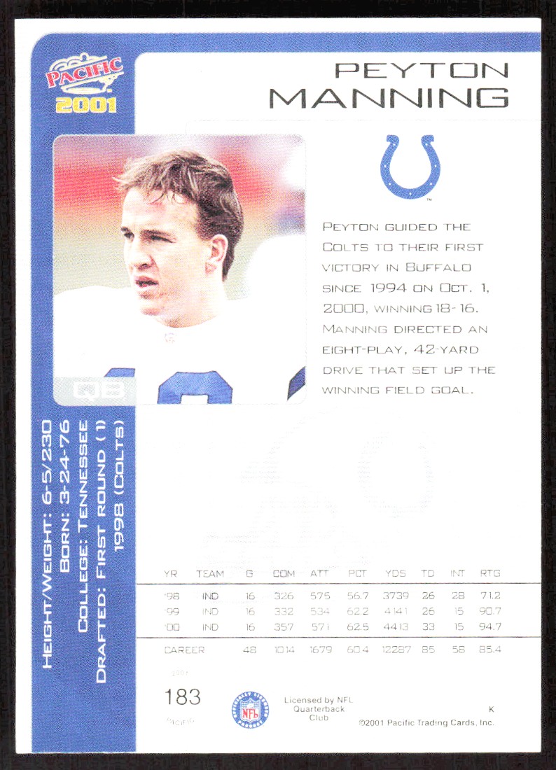 2001 1275C Pacific Peyton Manning Indianapolis Colts #183
