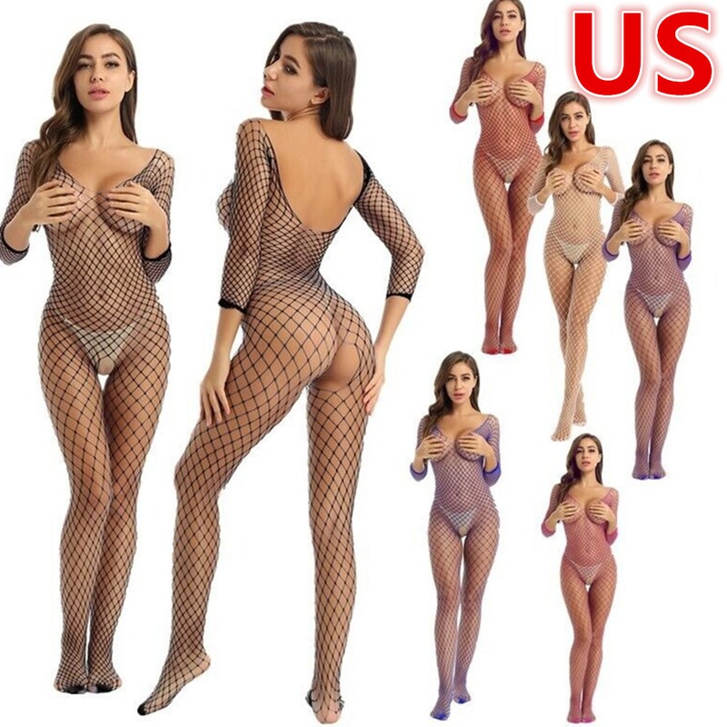US Women's Wet Look Bodysuit Patent,Leather Lingerie Catsuit Clubwear Jumpsuit