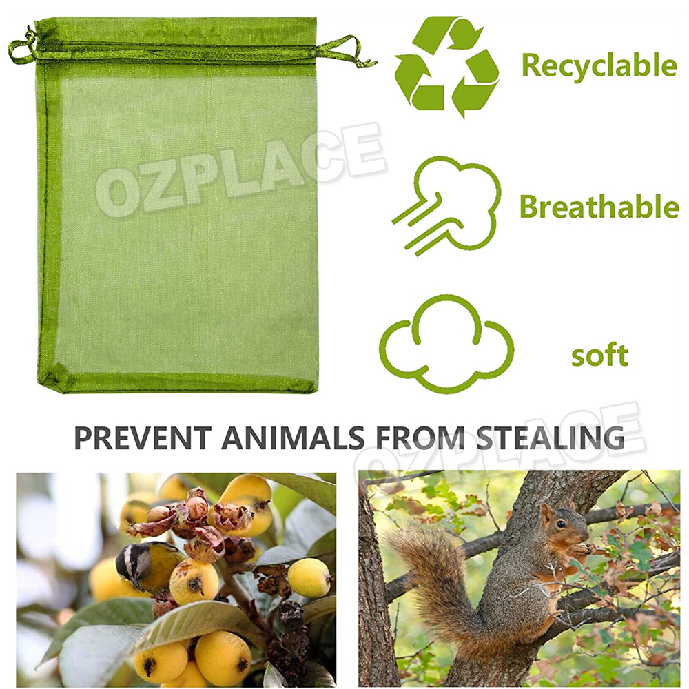 1.High Quality Material: Our garden fruit protection bags, made from high quality organza, are breathable, hard wearing and reusable and will hide your fruit from birds, bugs and squirrels.