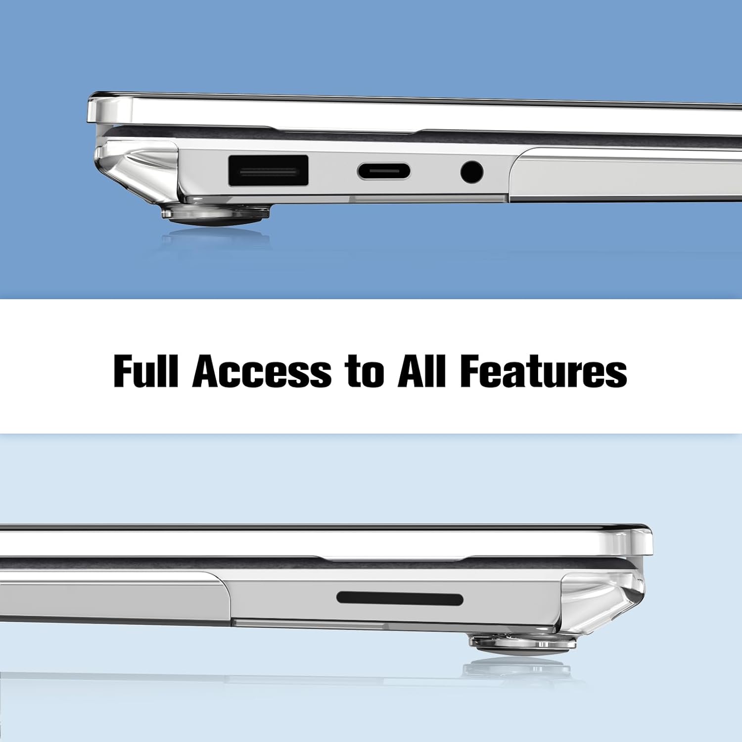 Design lets you open/close your laptop all the way and access to all ports.