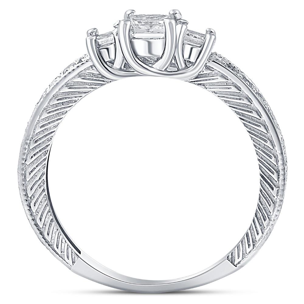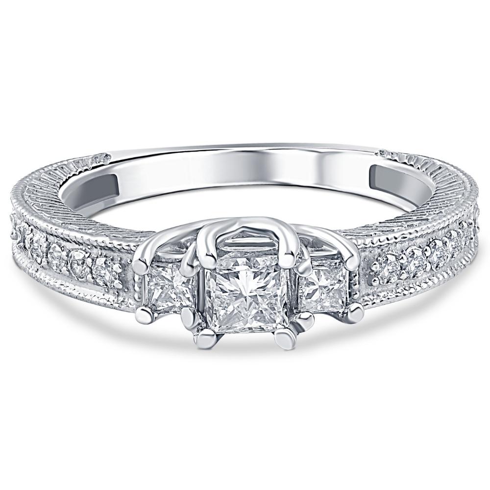 1/2ct Three Stone Princess Cut Diamond Engagement Ring 14K White Gold