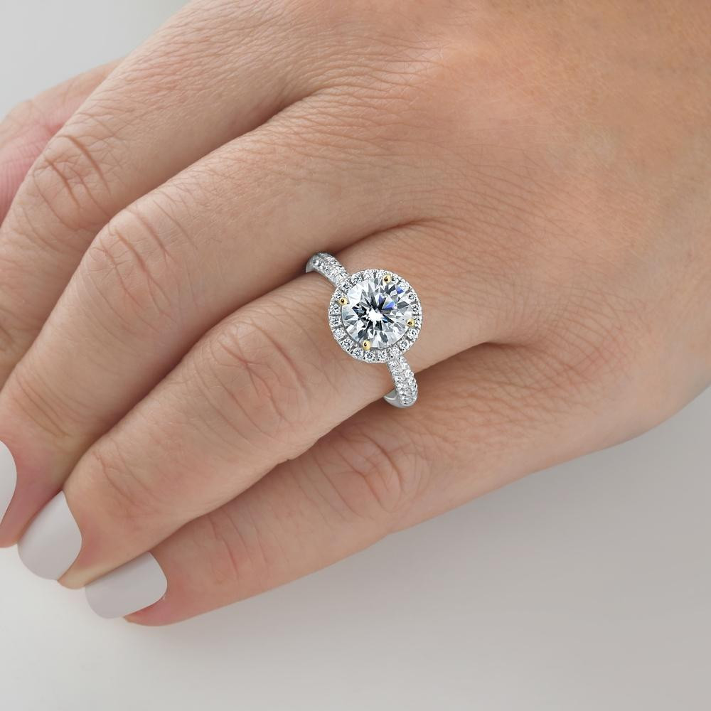 2 3/8Ct Pave Halo Diamond Engagement Ring Lab Grown Gold EF/VS