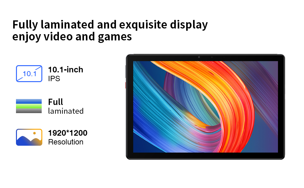 【10.1-inch Large IPS Display & 8MP +8MP Camera】The 10.1-inch tablet is equipped with a 1920*1200 resolution HD touchscreen with a larger viewing area and wider field of view, supporting split-screen operation, which brings you immersive visual enjoyment whether you're playing games, watching movies, reading, taking notes, or working. The 8MP rear camera and 8MP front-facing camera, feature a wider viewing angle for brighter, more lifelike photos.