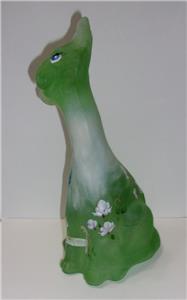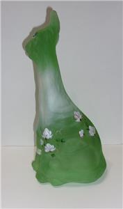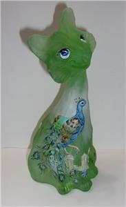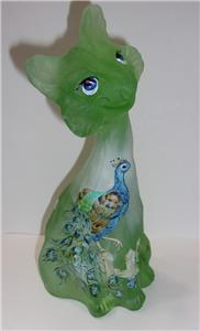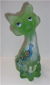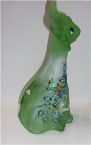Fenton Glass Apple Green Satin Peacock Alley Cat Figurine Ltd Ed #36/49 M Kibbe