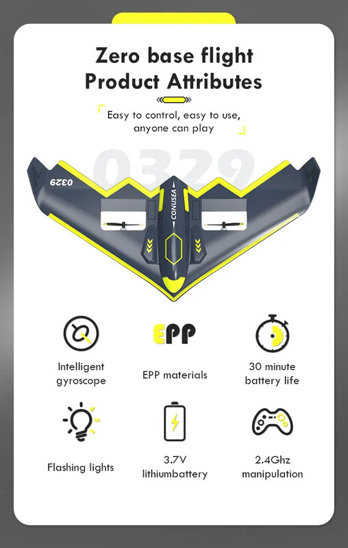 0329 Stealth Bomber Glider Toy Plane with Led 2Ch Wingspan Hand Throw Rc Plane Aircraft 2.4G Remote Control Airplane Drone Toys