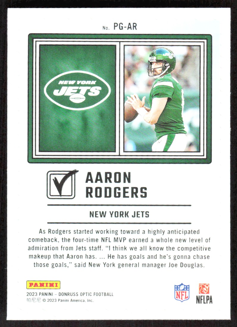 2023 3723C DONRUSS OPTIC PASSING GRADE Aaron Rodgers New York Jets #PG-AR