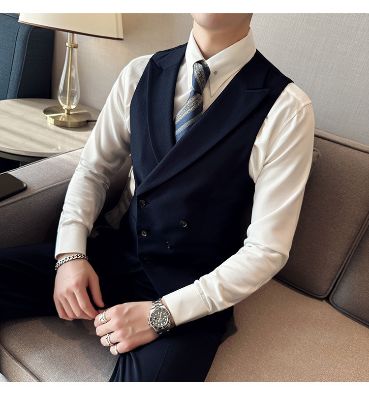Men V Neck Double Breasted Vest Formal Suit Waistcoat Sleeveless Jacket Tops Hot