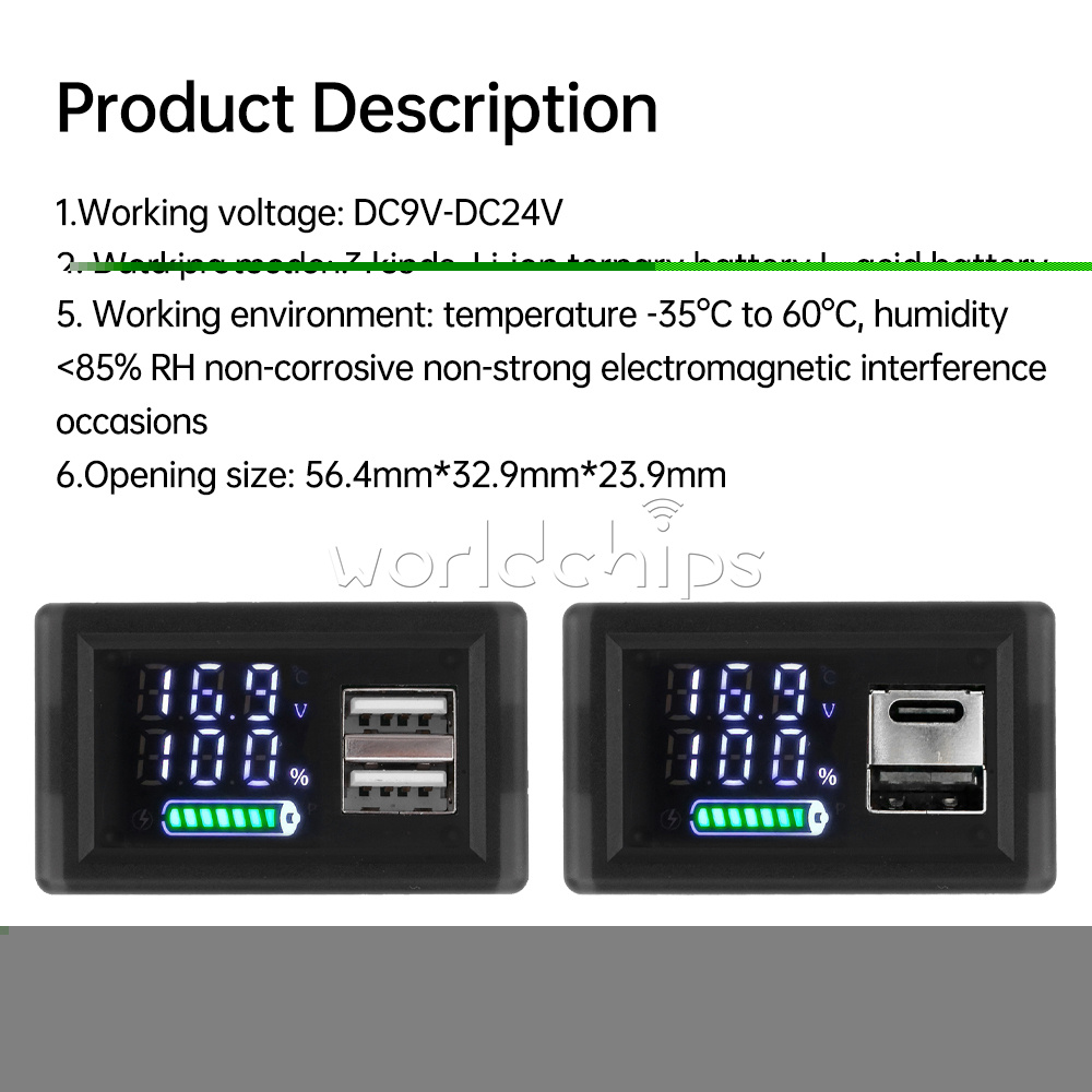 1.High-definition LED digital display screen, power on to display the percentage of power/real-time voltage, easy to read at a glance.