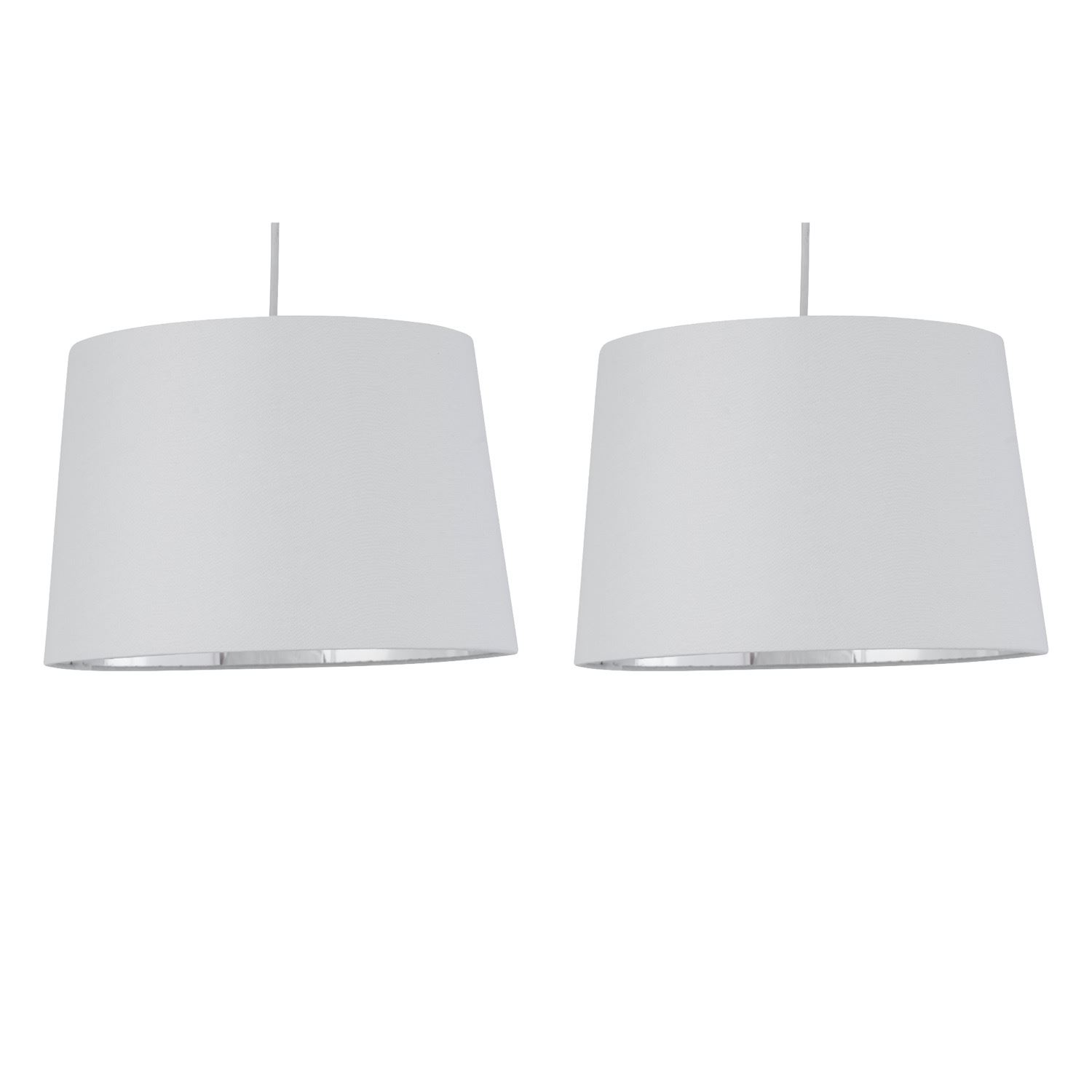 Set of 2 white cotton fabric with contrast metallic inner tapered cylinder easy fit 28cm shades for use on a ceiling pendant or table lamp