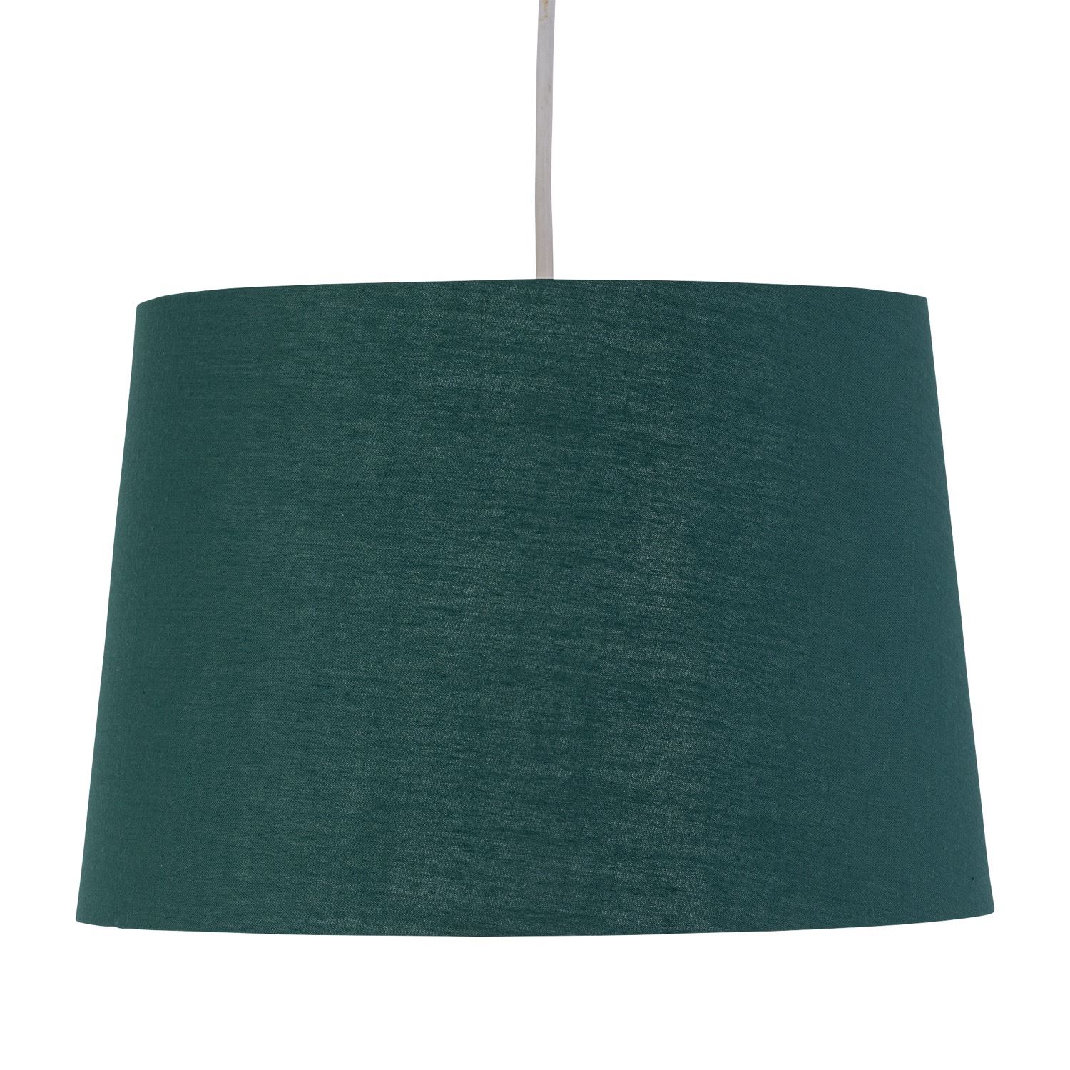 Set of 2 dark green cotton fabric with contrast metallic inner tapered cylinder easy fit 28cm shades for use on a ceiling pendant or table lamp