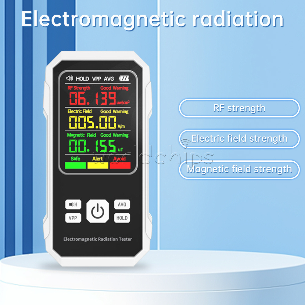 3. detects three parameters at the same time, quickly detects RF strength, electric field strength and magnetic field strength, and displays the data in the same interface, and at the same time prompts whether the three data exceed the standard.