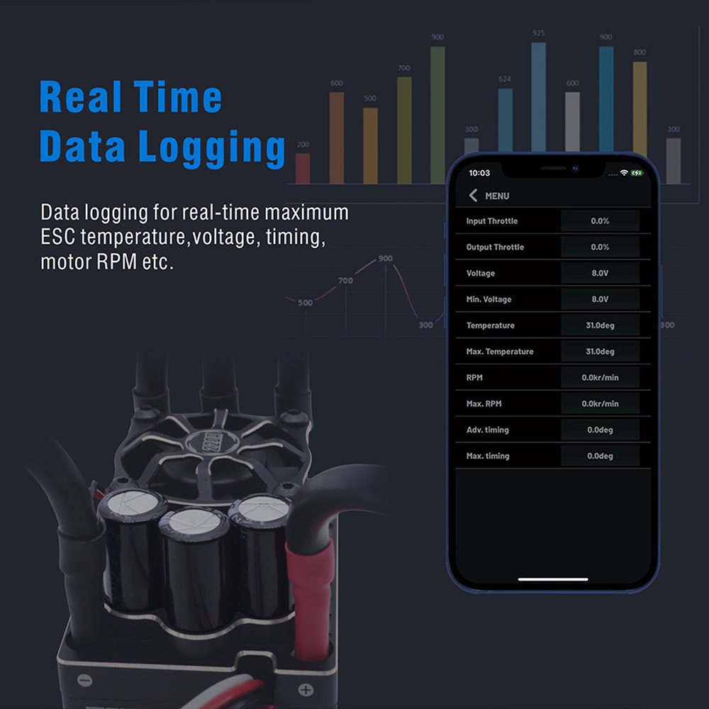 The ESC possesses an aluminum cooling system offering excellent heat dissipation, a strong resistant current capability.