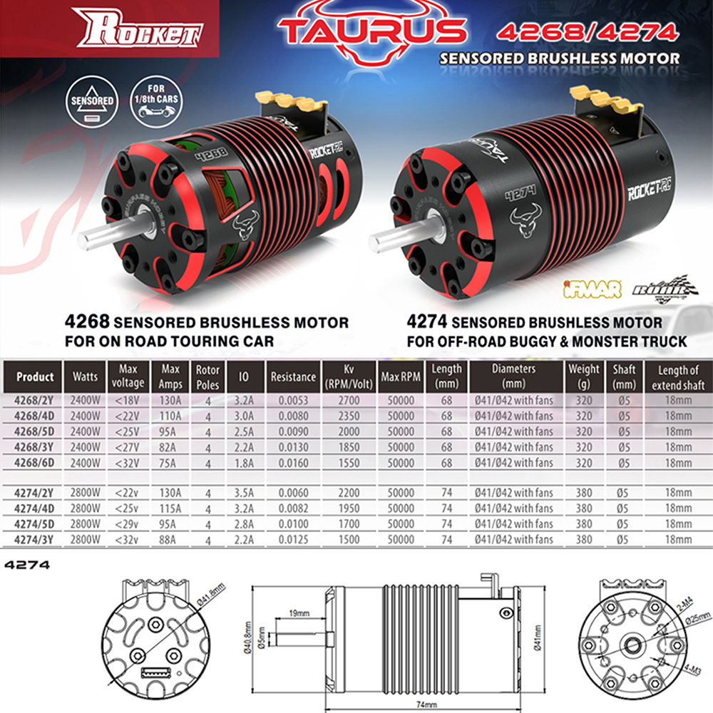 ROCKET-RC Brushless ESC Motor Combo Sensored 220A 2-4S Speed Controller 7.4V/6A BEC with 4268 4274 2700KV 2200KV Motor for 1/8 RC Car Off Road Buggy Replacement Parts