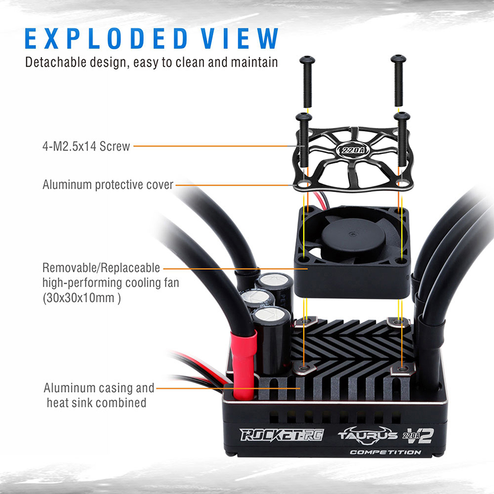 Built with the superior components features enhanced throttle response, excellent acceleration, linearity and drive ability, it is a good choice for RC hobbyists, especially for DIY enthusiasts.