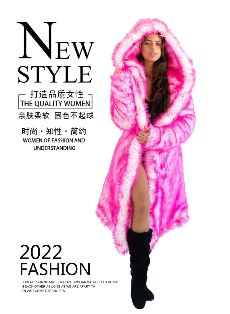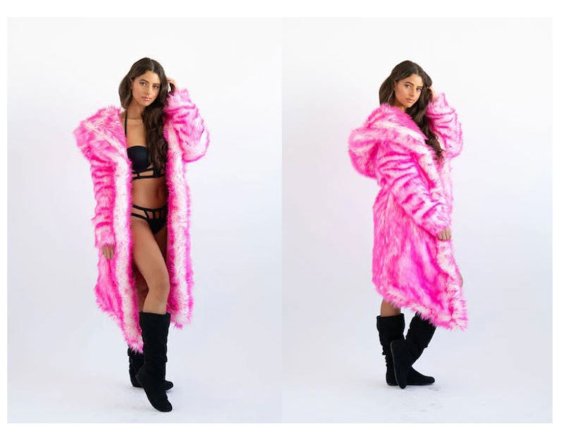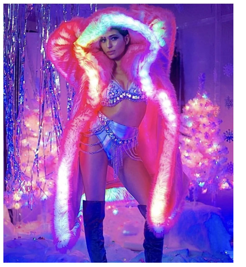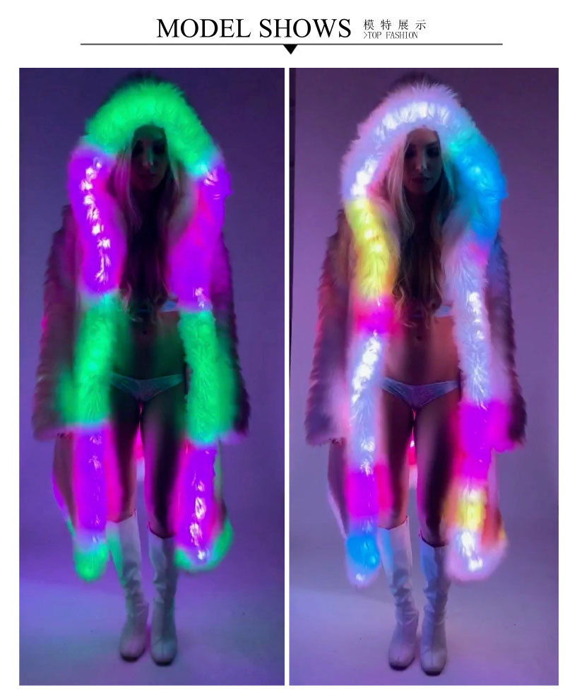 Women Faux Fur Led Luminous Performance Party Dress Cosplay Holiday Hooded Coat