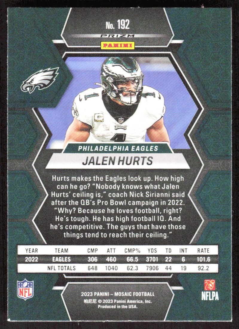 2023 5177C Panini Mosaic Camo Pink PRIZM Jalen Hurts Philadelphia Eagles #192