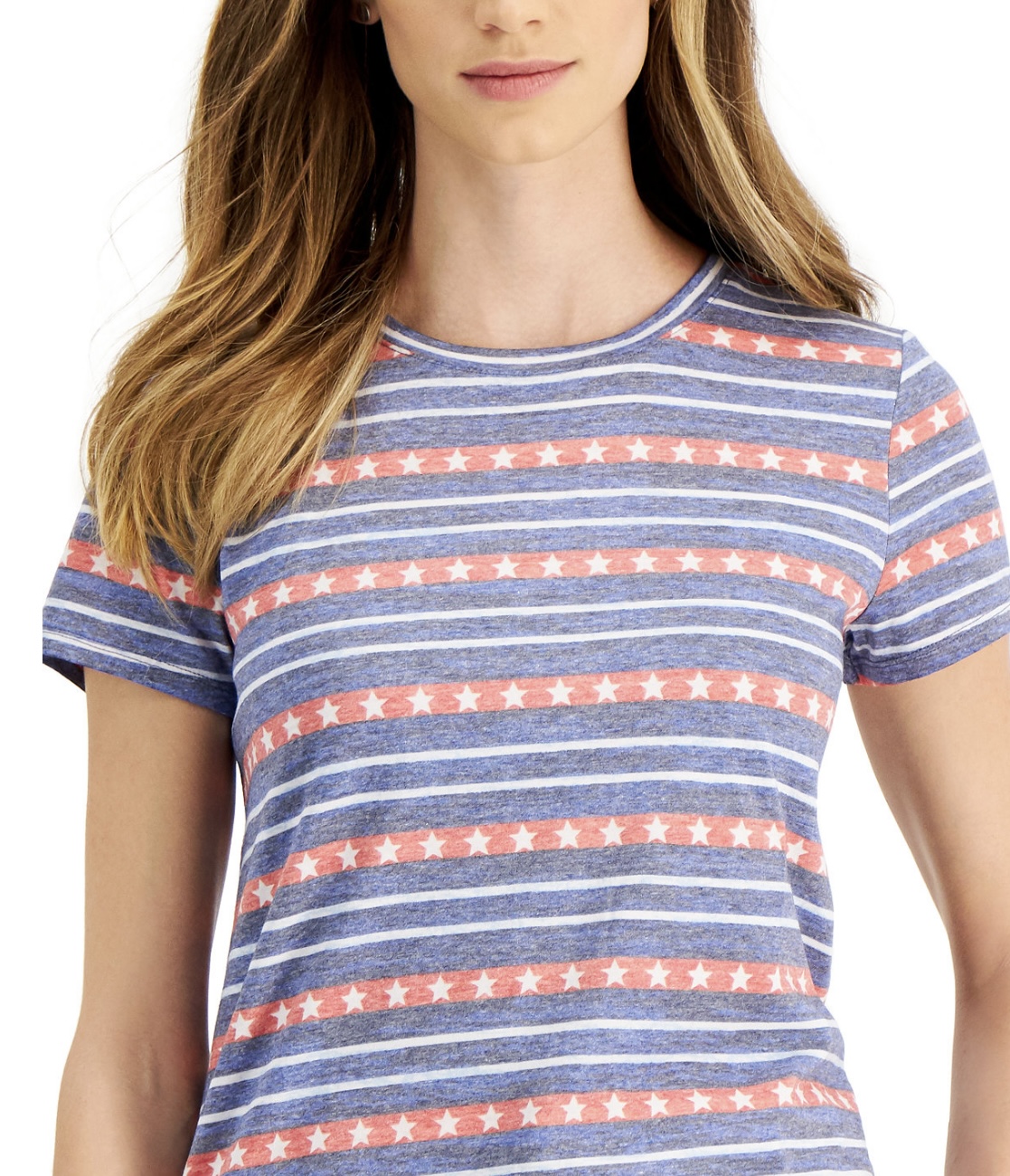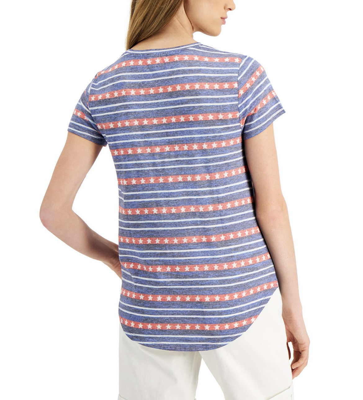 Style & Co. Petite Stars Stripes Burnout T-Shirt Starry Blue Size PS
