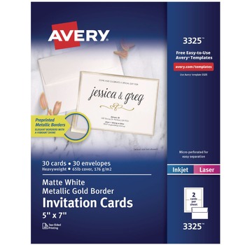 Avery 80 lbs. 5 in. x 7 in. Invitation Cards with Metallic Border for Inkjet/Laser Printers - Matte White (2 Cards/Sheet, 15 Sheets/Pack)