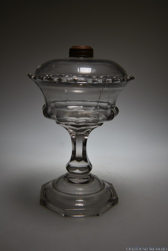 1881 No. 0003 WARE / DART by Belmont Glass Works COLORLESS Kerosene Lamp 9 3/8 "