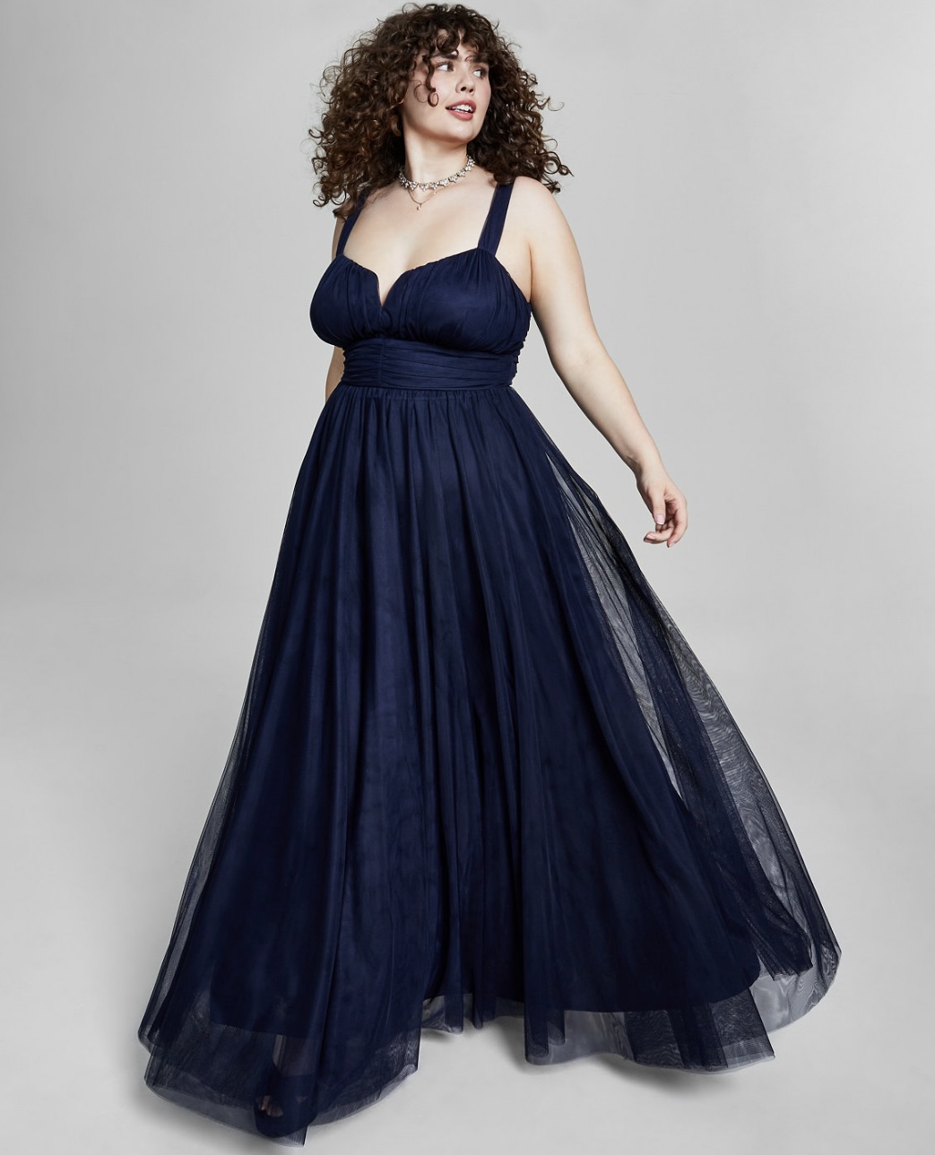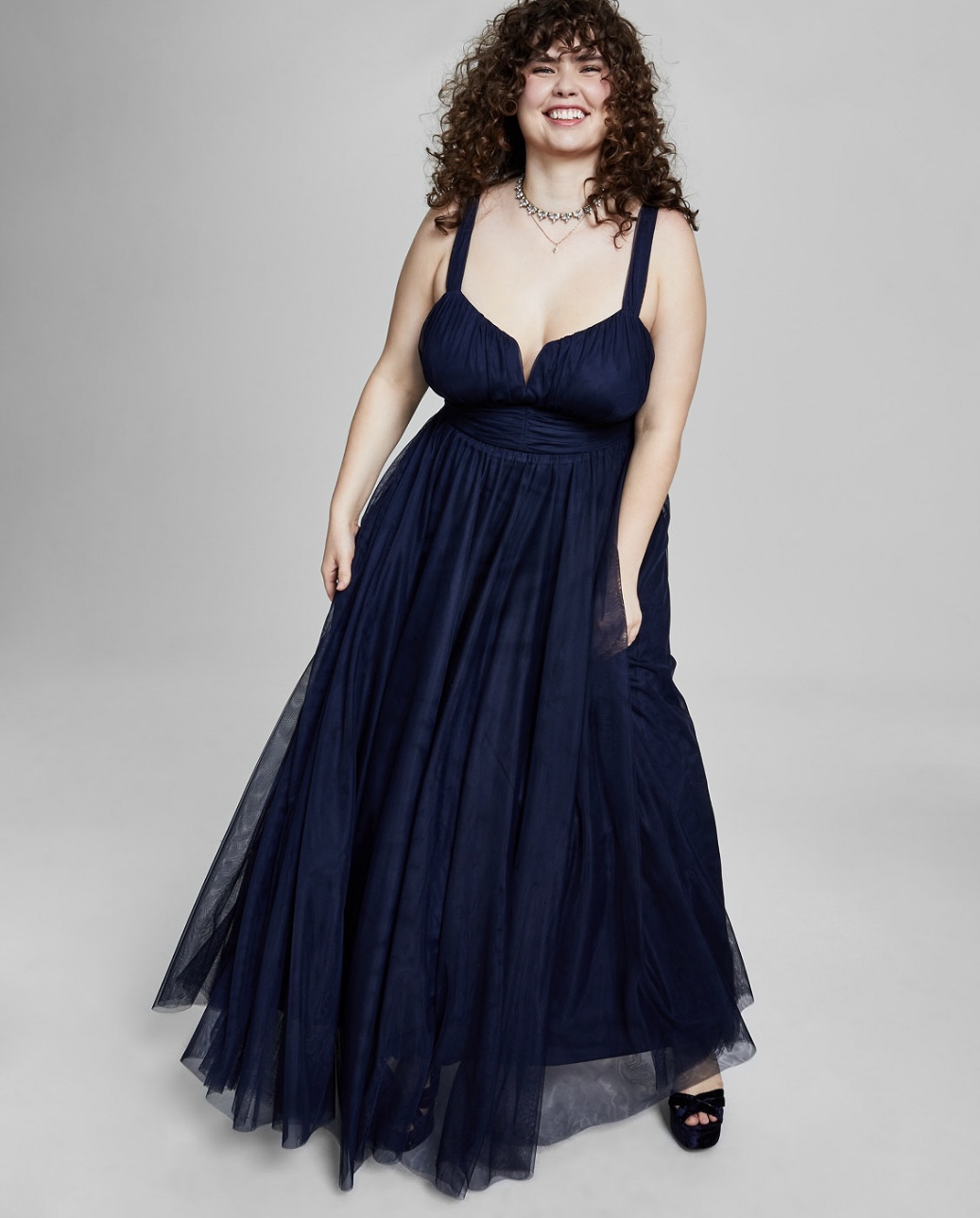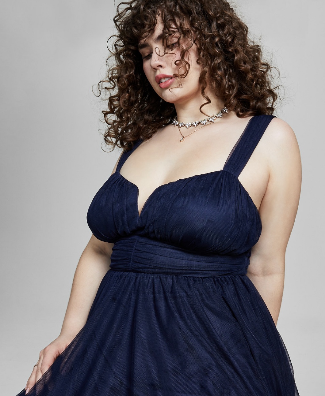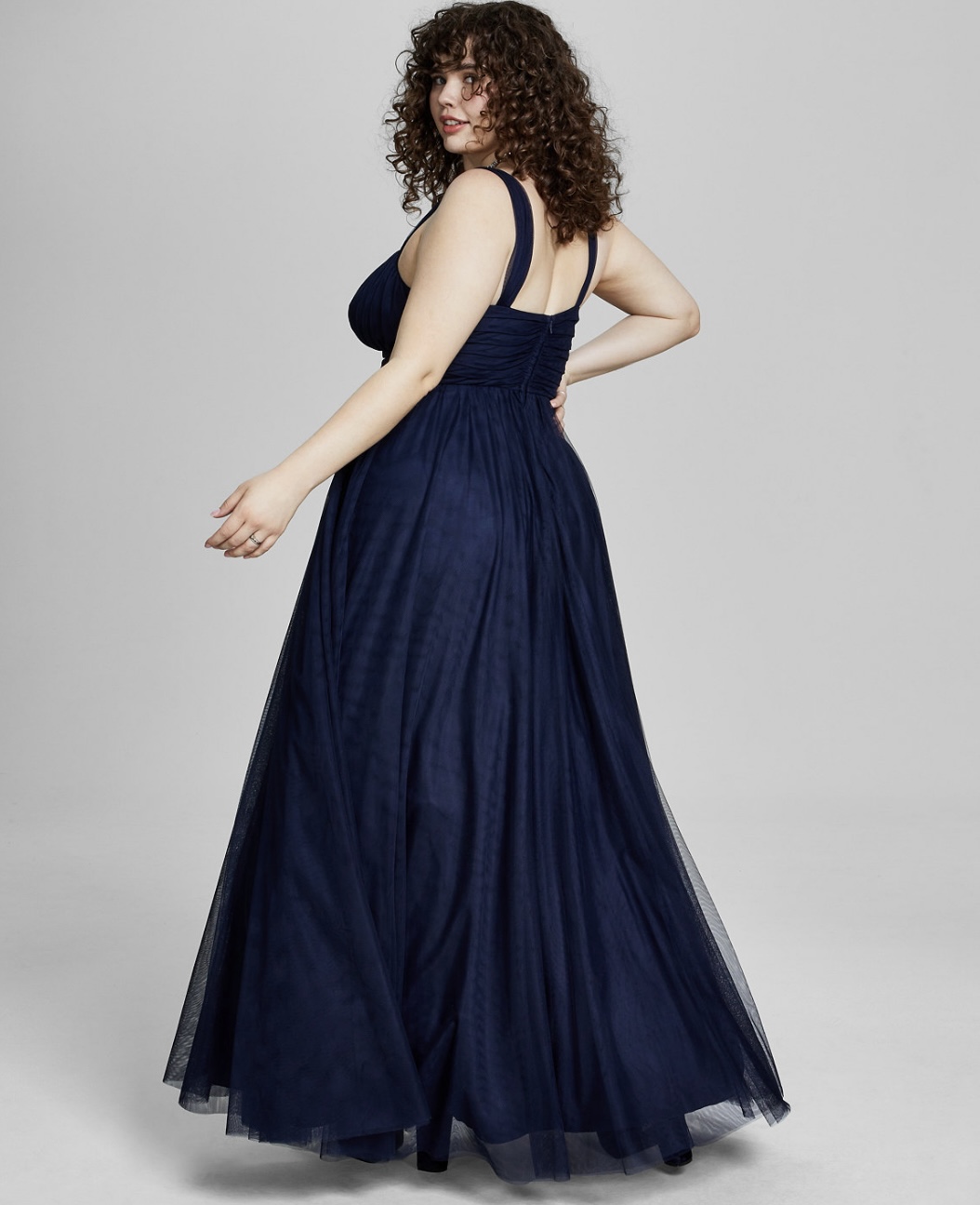 City Studio Women's Mesh Ruched Evening Dress Navy Ink Plus Size 18W