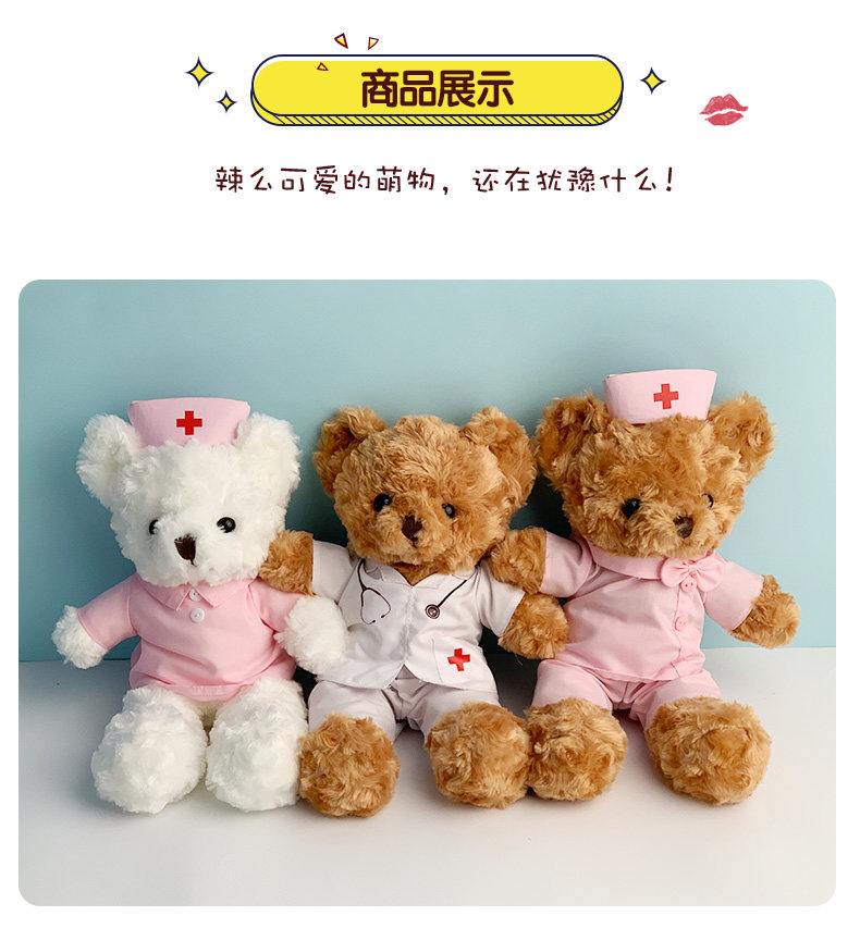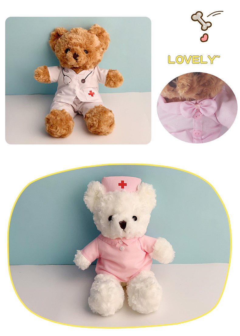 Lovely Doctor Bear Nurse Ted Bears Brown White Animal Doll Soft Stuffed Plush Toy Girl Boy Birthday Christmas Gift 1pc
