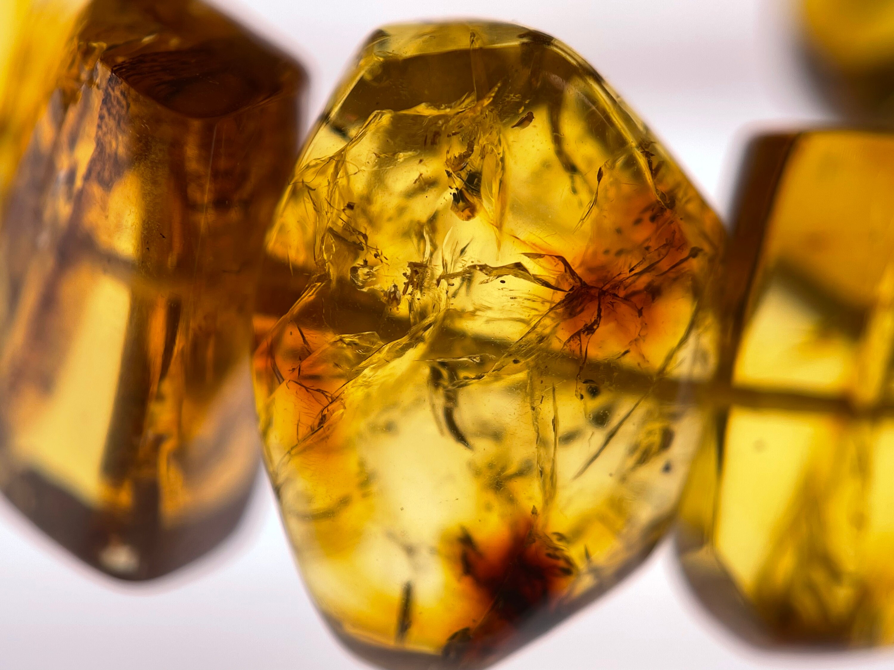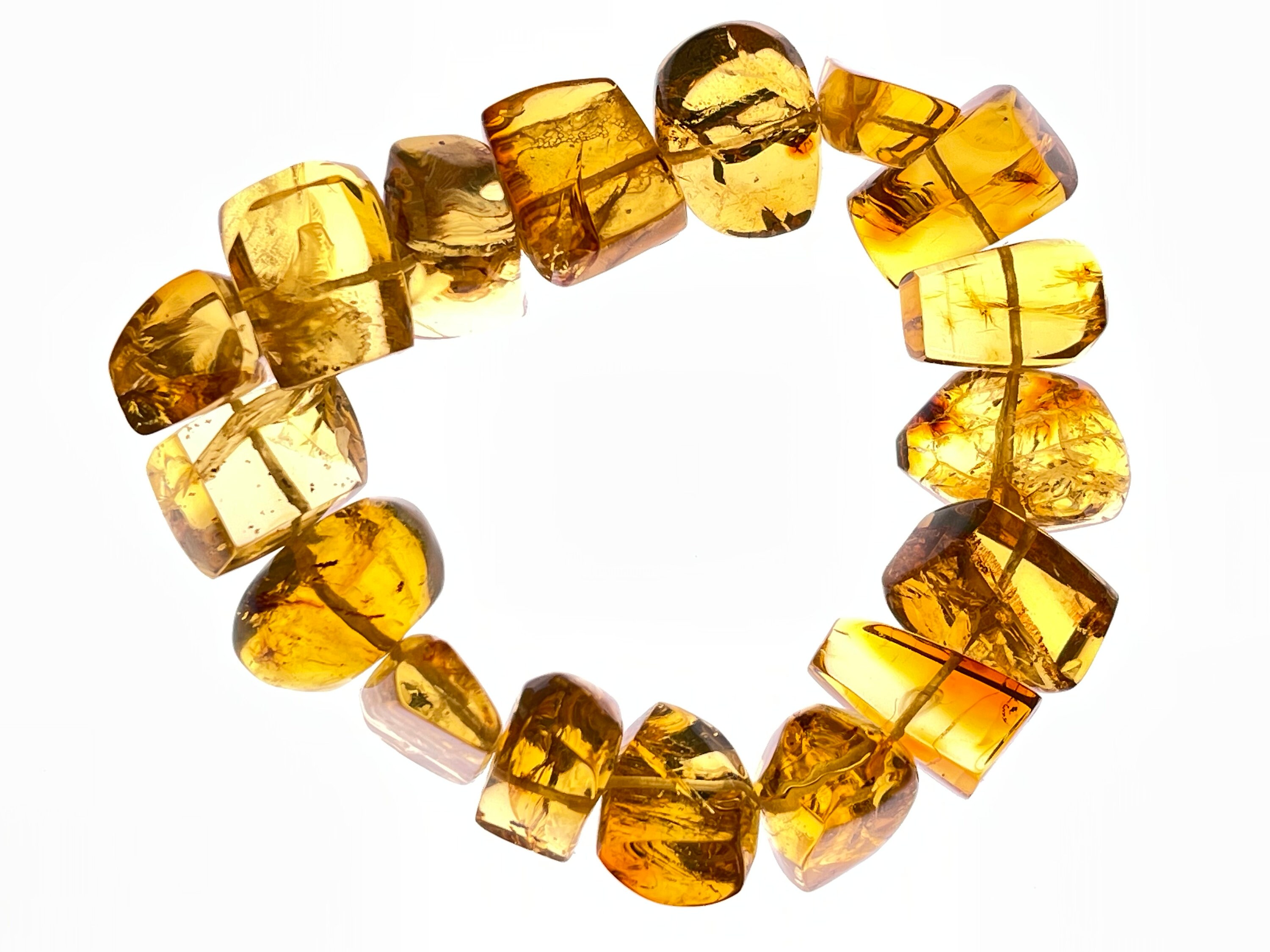 Amber is hard, translucent, fossilized tree resin produced by extinct coniferous trees from the Tertiary period. It is typically yellow in color but can range from brown to orange or red. Amber is graded by color, clarity, rarity of inclusions (popularized by Jurassic Park), hardness, color of fluorescence, and sometimes locality. Many ambers fluoresce green or blue under ultraviolet light, giving added appeal and value! While Amber is hard enough to use in jewelry, Copal is young amber that does not have the same durability. All of our Indonesian Amber was hand selected in Indonesia in 2012 and has been tested in a lab in Tokyo, proving it as genuine Amber and not Copal. All of our Mexican Amber is ethically sourced directly in Chiapas straight from the miners.