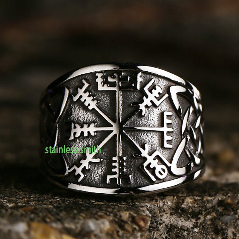 SMITH Men's Stainless Steel Viking Celtic Knot Vegvisir Compass Ring Size 6-15