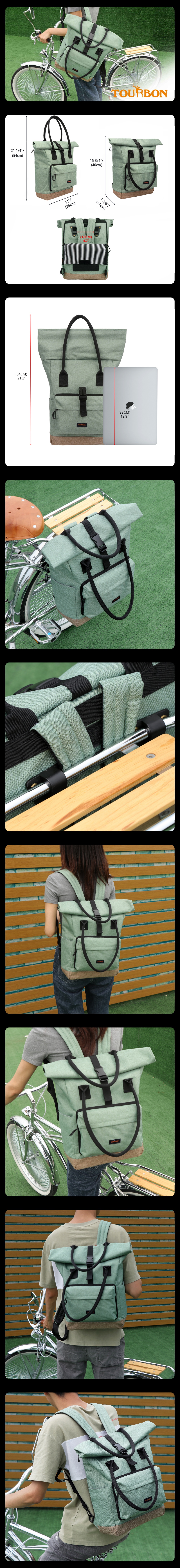 TOURBON Roll-top Bike Panniers Bag Clip-on Camping Backpack Shoulder Tote Bag UK