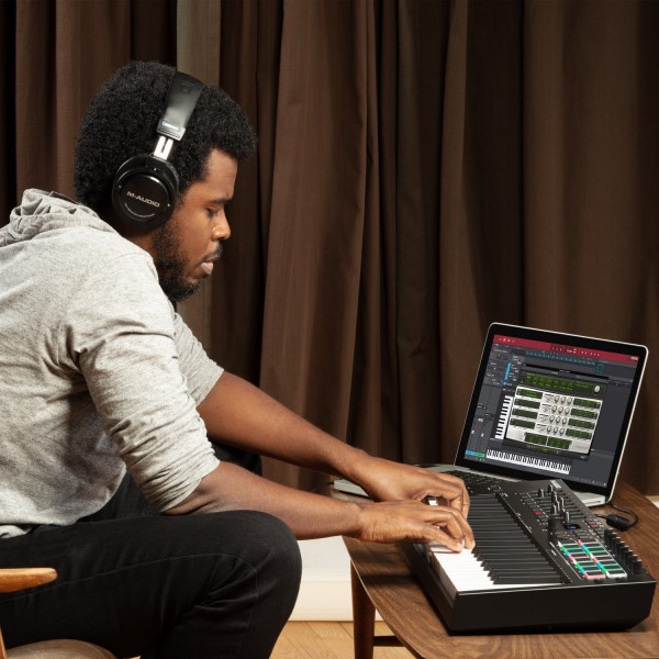 Das Oxygen Pro 49 lässt sich dank Auto-Mapping nahtlos in nahezu jede gängige DAW integrieren, darunter Pro Tools, Ableton Live, Cubase, Logic, Studio One und mehr. Der integrierte OLED-Bildschirm erleichtert die Konfiguration und ermöglicht schnelle Anpassungen. Automatisch zugewiesene Funktionen wie Transportkontrollen, Fader und Plugin-Parameter sorgen für eine flüssige und effiziente Bedienung.
