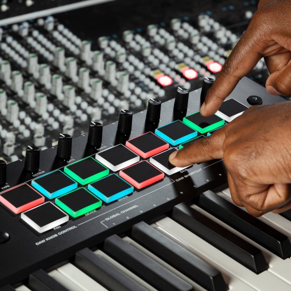 16 hintergrundbeleuchtete, anschlagsdynamische RGB-Pads ermöglichen eine präzise Beat-Produktion, das Starten von Clips und das Triggern von Sounds. Die Pads sind mit Note-Repeat-Funktion ausgestattet, wodurch komplexe Rhythmen und perkussive Akzente einfach realisiert werden können.