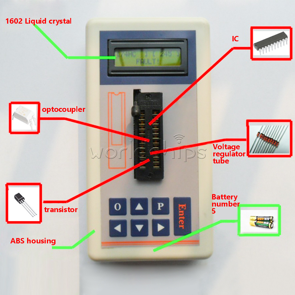 Is a multi-functional maintenance tester designed specifically for front-line maintenance personnel, can choose different test modes 5v mode, 3.3v mode, automatic mode, etc. can test 74ch series, 74ls series, osmo series, CD4000 series, HEF400 series, 4500 series, operational amplifiers, interface class chips, optocouplers, transistors automatic identification, voltage regulator tube voltage value Identification, etc.