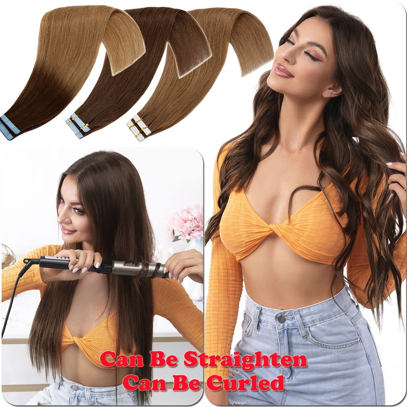 【High-Strength Tapes & Easy to Take Out】-- Specially developed high-strength invisible tape.Tape in hair extensions specification: 1.5inch width, 20 Pieces, 50g Per Package. Recommend 2-3 sets for thick full head. 14-24inch available.