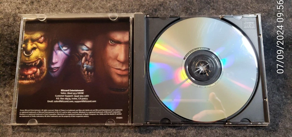 WarCraft III: Reign of Chaos (Windows/Mac, 2002) (C1B1)....................................... CASE IS CRACKED AND SCUFFED ........................ DISK IS EXCELLENT WITH ONLY MINOR SCUFFS........................... INCLUDES CD KEY ON THE FRONT OF THE CASE................................ AS SHOWN ............................ AS PICTURED....................... .......................
