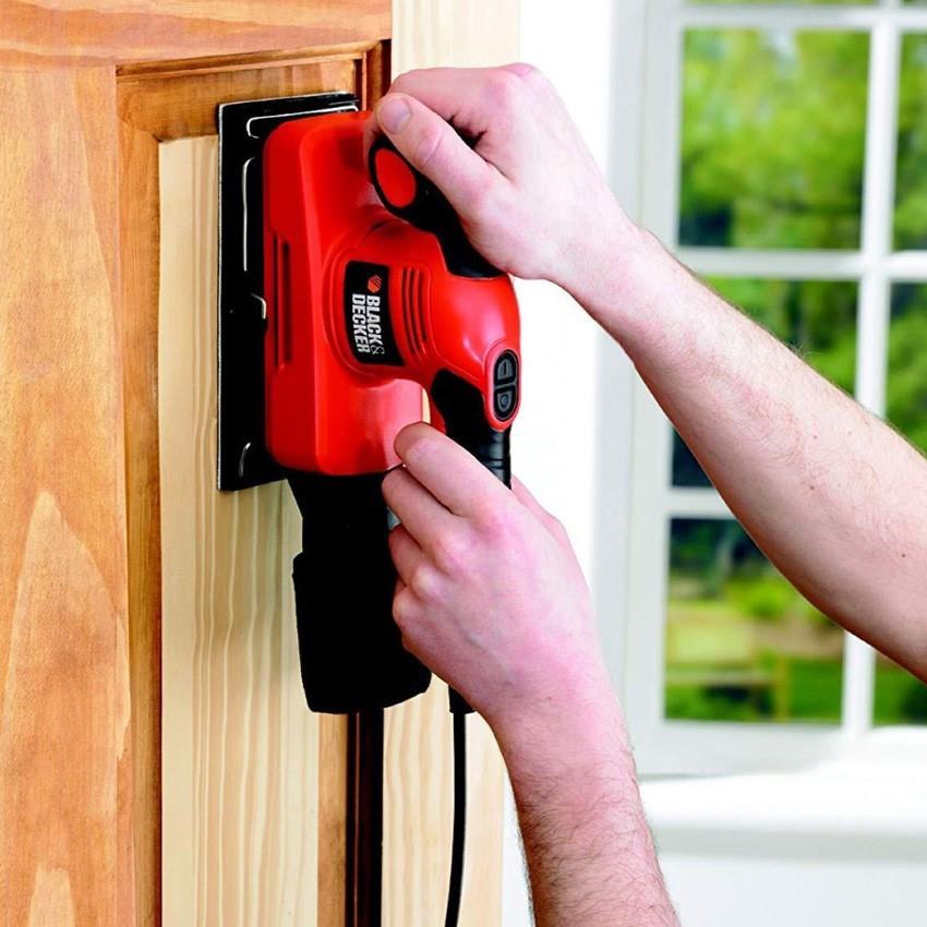 The Black Decker KA320EKA 1/3rd Sheet Variable Speed Orbital Sander has a large orbit size with variable speed settings for greater control when sanding. Sands flush to three sides and is ideal for use on vertical surfaces such as doors and walls, for light to medium sanding tasks.