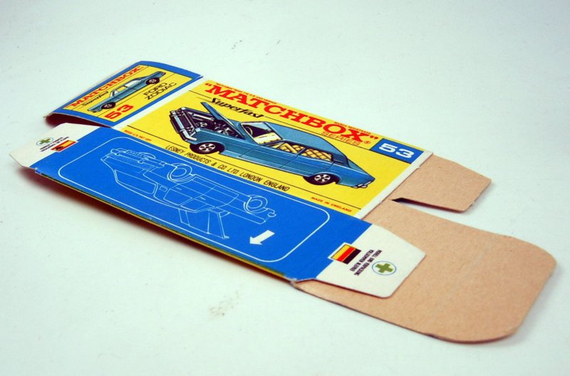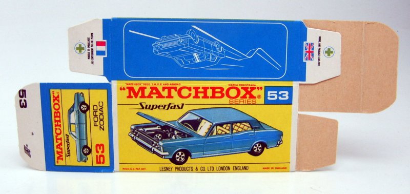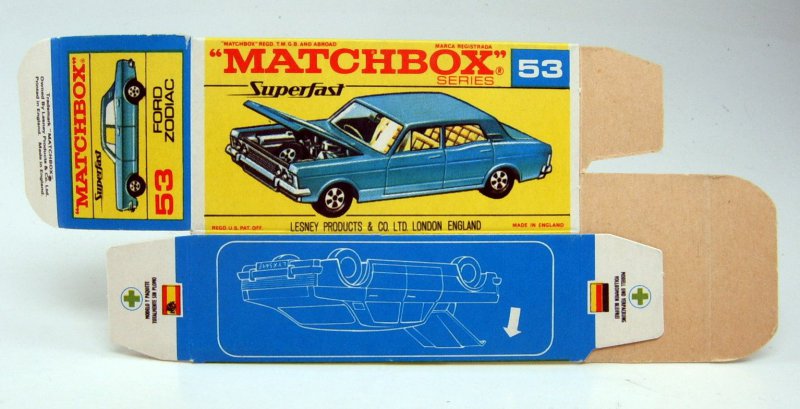 Lesney Matchbox 1-75 Superfast Series Made in England unfolded boxes No. 53A Ford Zodiac